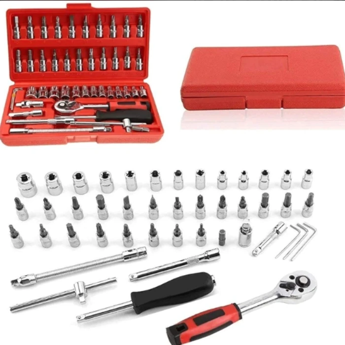 46 In 1 Pcs Tool Kit & Screwdriver and Socket Set, Hand Tool Kit Wrench Set Multi Purpose Combination Tool Case Precision Socket Set, Bike Tool Kit Set All Bike, Car Tool Kit Set
